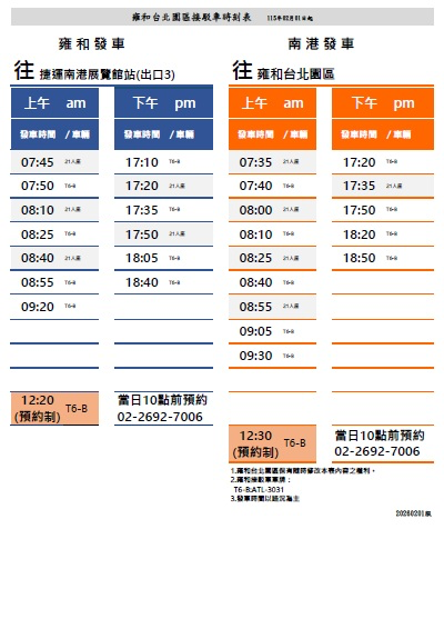 Home / 交通方式 TRANSPORTATION 交通方式 LOCATION & TRANSPORTATION CCA自家咖啡學院的地點與交通方式 學院地址:台北市汐止區南陽街201號2樓(雍和台北園區B棟) 自行開車 ・距離捷運南港展覽館站,開車約5分鐘即可到達。・停車場:園區B1訪客停車場,停車費上限200元/日。・高速公路:介於國道1號與國道3號中間,南港與汐止交流道皆可抵達。 大眾運輸 ・可使用園區接駁車、藍21副公車抵達(可參考下方資訊)。・停靠雍和台北園區公車:284經三總、藍36。 接駁車乘車位置 藍21副公車時刻表 雍和台北園區接駁車時刻表